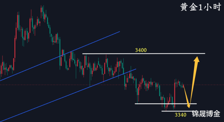黄金每一次下跌都是倒车接人,每一次回落都是机会,本周黄金持续往下,从3450—3340五天时间只跌了110美金,这个不是趋势转空!